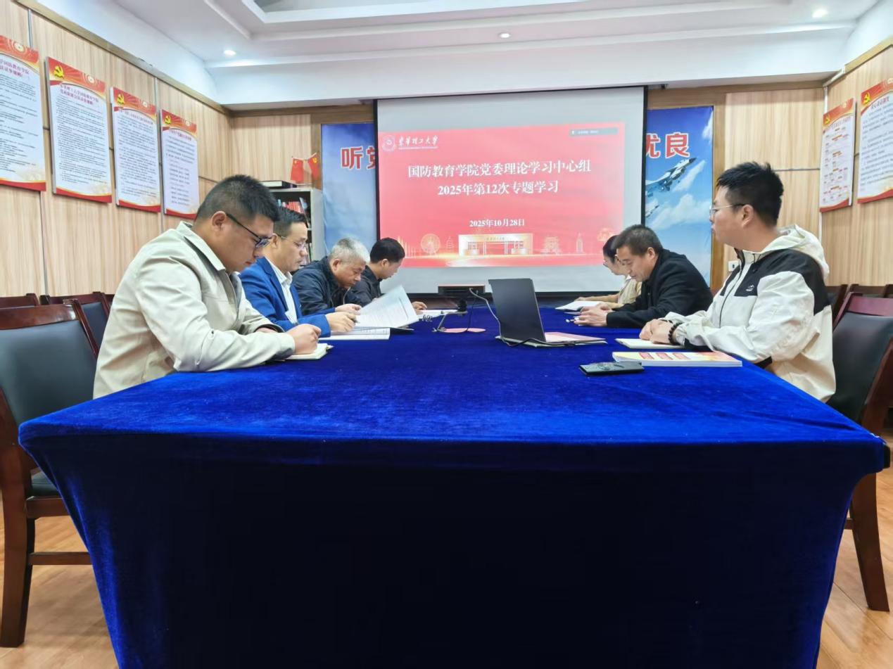 1028日,国防教育学院党委书记赵克锋主持召开2025年第12次党委理论学习中心组(扩大)学习会。院党委副书记、院长吕开云、院党委理论学习中心组成员、各科室部门负责人参加。