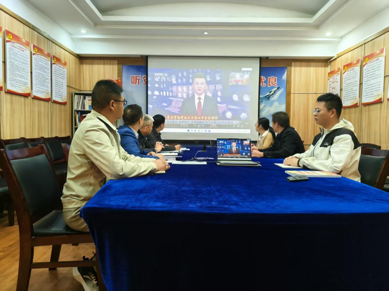 会上,全体参会人员观看央视新闻《学习贯彻党的二十届四中全会精神-夯实基础全面发力谱写中国式现代化更加绚丽的篇章》、传达学习了党的二十届四中全会精神、《中国共产党第二十届中央委员会第四次全体会议公报》、传达学习了全省领导干部大会精神。
