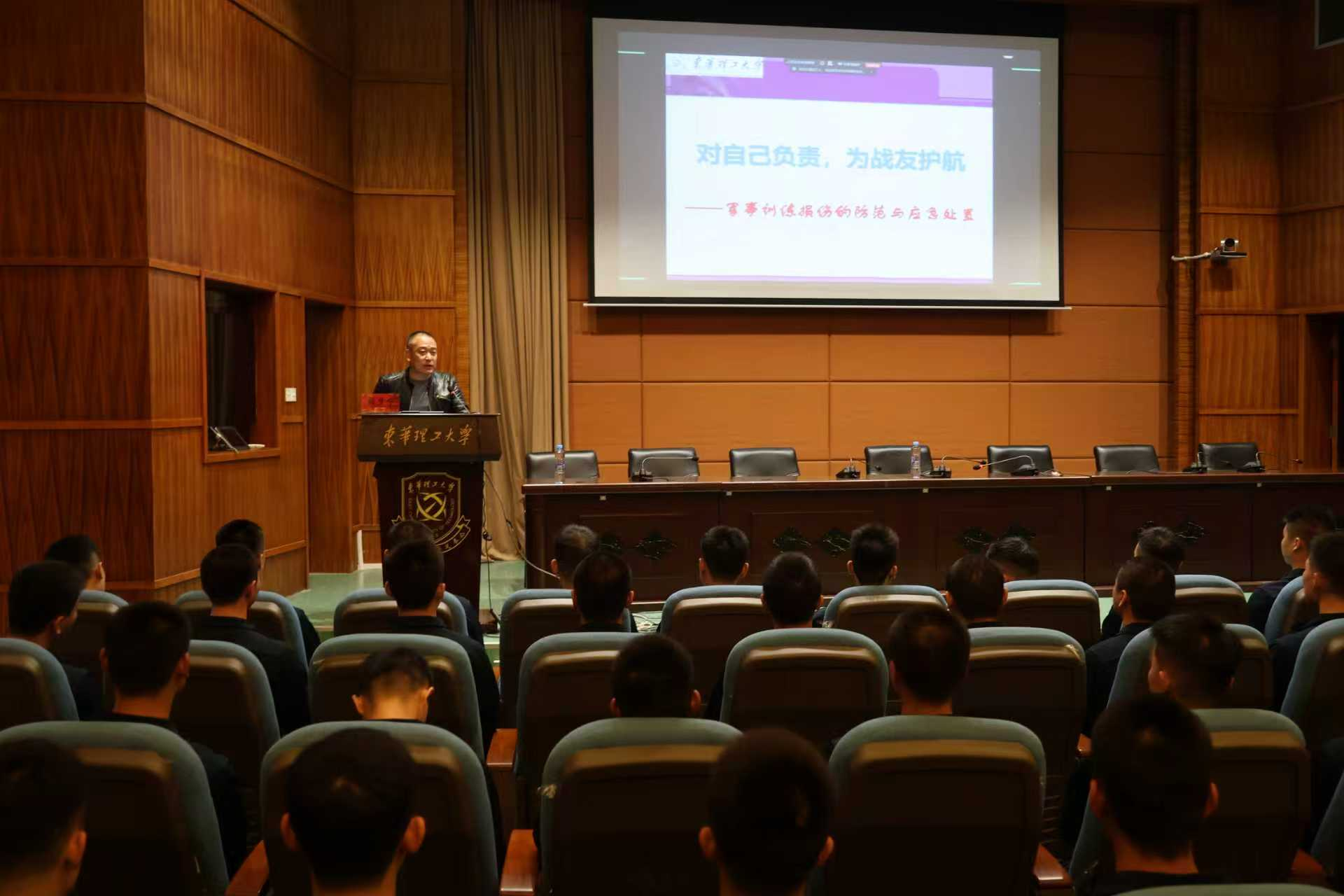 为有效提升定向培养军士的军事训练损伤防范意识与应急处置能力,助力其更好适应军事训练的实际需求。2025年11月11日19时,在抚州校区学府校园图书馆四楼报告厅由体育与艺术学院颉梦宁教授为定向培养军士作了题为“军事训练损伤的防范与应急处置”的专题讲座。本次讲座由国防教育学院、高等职业技术学院党委书记赵克锋主持,学院430余名师生线下线上聆听。