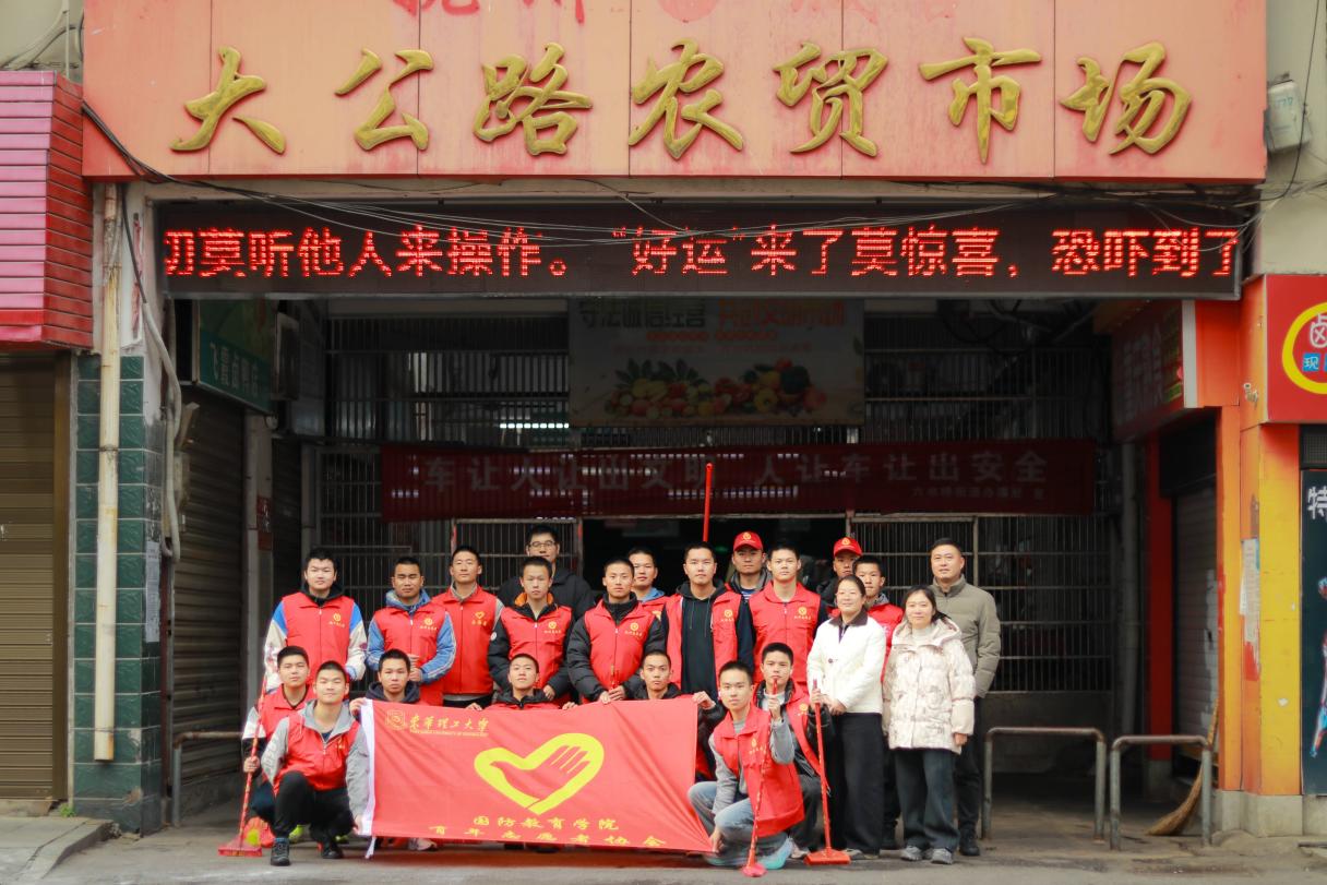 为弘扬志愿服务精神,践行青年社会担当,12月25日,国防教育学院联合二仙桥社区党群服务中心,组织20名师生代表前往大公路农贸市场开展志愿服务活动。