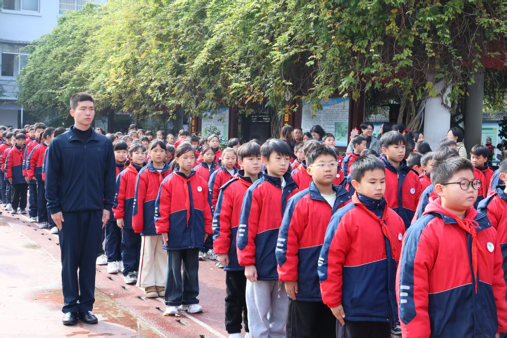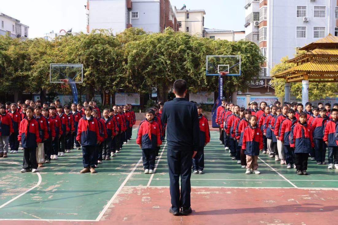经过一个月的刻苦训练,展示活动如期开展。各班学生依次登场,步伐铿锵、口号响亮,队列横竖成线,转身利落干脆,“报效祖国,感恩老师”的口号此起彼伏,稚嫩却洪亮的声音里满是少年意气与集体荣光。学生以严谨的纪律作风,展现出钢铁般的小小集体风貌,成为展示活动中的亮眼风景。