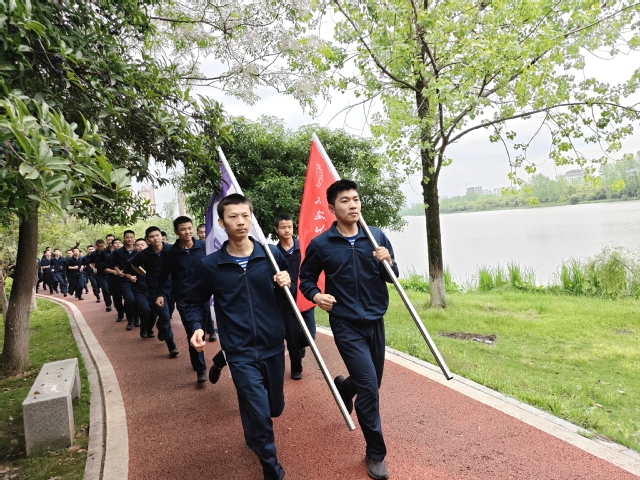 开幕式后,全院师生随即开展20公里拉练。活动严格对标海军基础体能训练标准,路线途经梦湖、三江湿地公园与抚河大桥,在“跑一路、练一路”中贯彻“淬火深蓝”育人理念,切实锤炼未来海军军士的铁血作风与极限耐力。