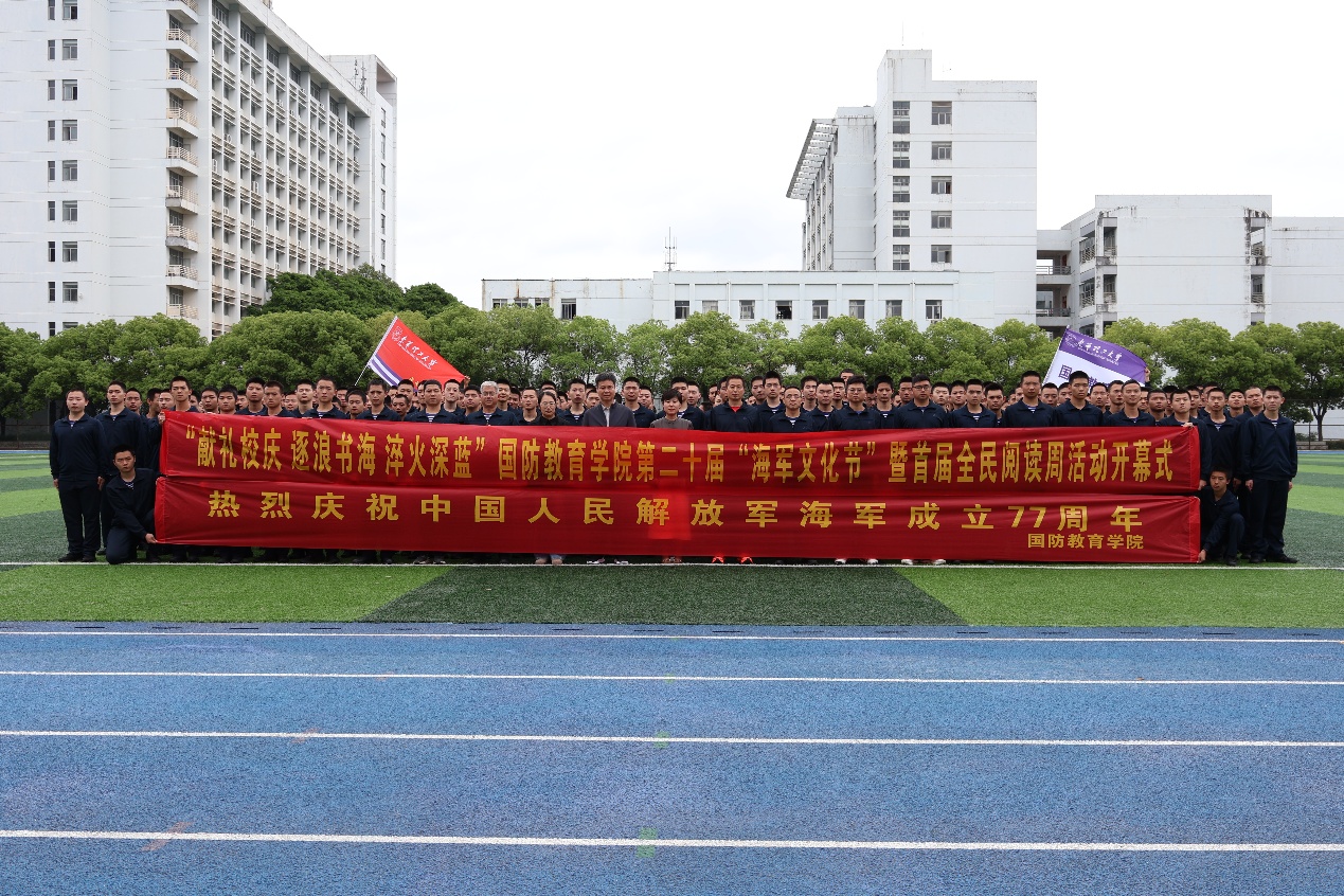 值此人民海军成立77周年及第31个“世界读书日”之际,4月23日14时,国防教育学院在抚州校区学府校园田径场隆重举行“献礼校庆 逐浪书海 淬火深蓝”第二十届“海军文化节”暨首届全民阅读周活动开幕式。抚州校区党工委副书记、抚州校区管委会负责日常工作副主任江汶俊、国防教育学院、高等职业技术学院党委书记赵克锋、院长吕开云、以及学院全体师生参加了此次活动。
